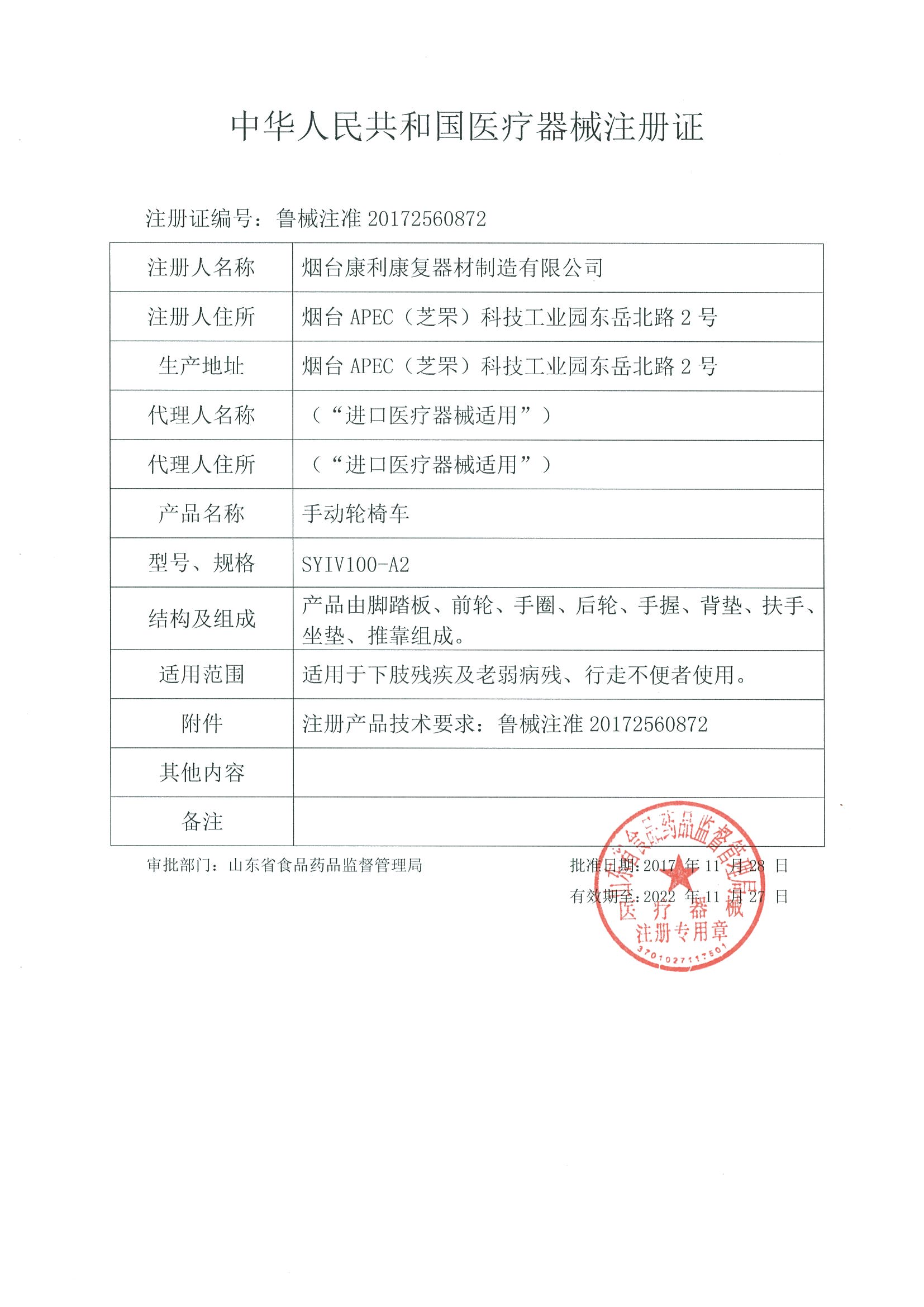 煙臺康利康復(fù)器材制造有限公司成立于1993年。公司自成立以來一致致力于手動輪椅車、電動輪椅車、手搖三輪車、手動護(hù)理床、電動護(hù)理床、座便椅、洗浴椅、助行器、拐杖等康復(fù)輔助器具的研發(fā)、生產(chǎn)和銷售。經(jīng)過20多年的不懈努力,我們先后研發(fā)和生產(chǎn)了130多個品種的康復(fù)輔助器具,產(chǎn)品銷售覆蓋國內(nèi)95%以上的省市自治區(qū),國外十多個國家和地區(qū),得到了各級政府及最終用戶的信賴與肯定。公司于2000年起先后通過了IS09001質(zhì)量管理體系認(rèn)證、IS013485醫(yī)療器械管理體系認(rèn)證、1S014001環(huán)境管理體系認(rèn)證、職業(yè)健康安全認(rèn)證、售后服務(wù)五星級認(rèn)證、歐盟CE安全認(rèn)證等。